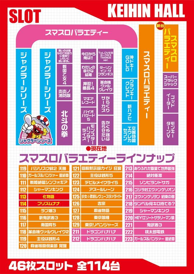 | 台数 | パチンコ117台 / パチスロ114台 |