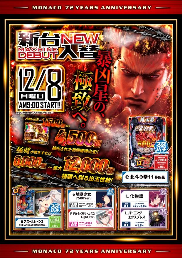 - 12/8(月)☆新台入替☆e北斗の拳11暴凶星&L化物語他!!