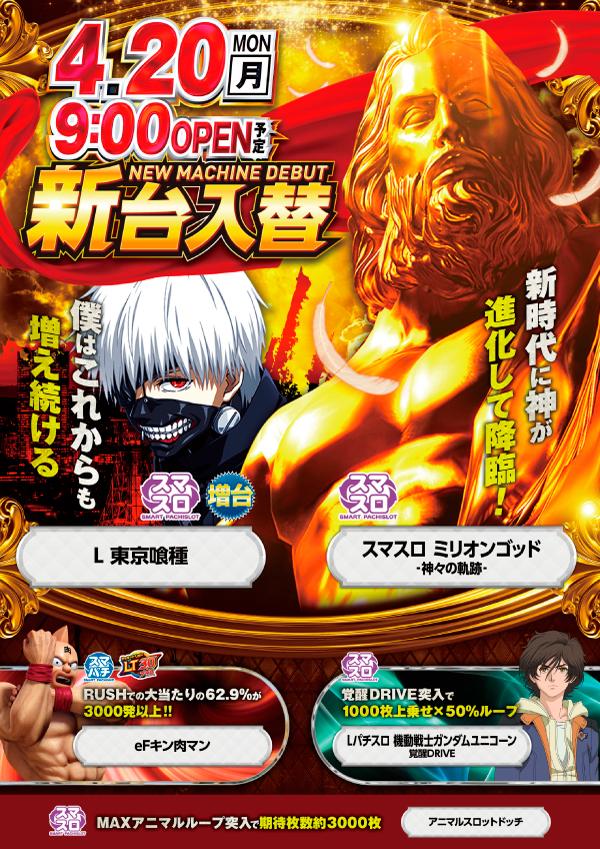 | 台数 | パチンコ504台 / パチスロ304台 |
