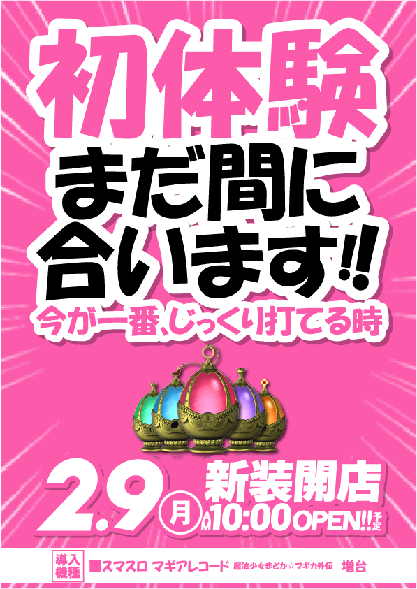 - 2月9日「月」新装開店 10時開店