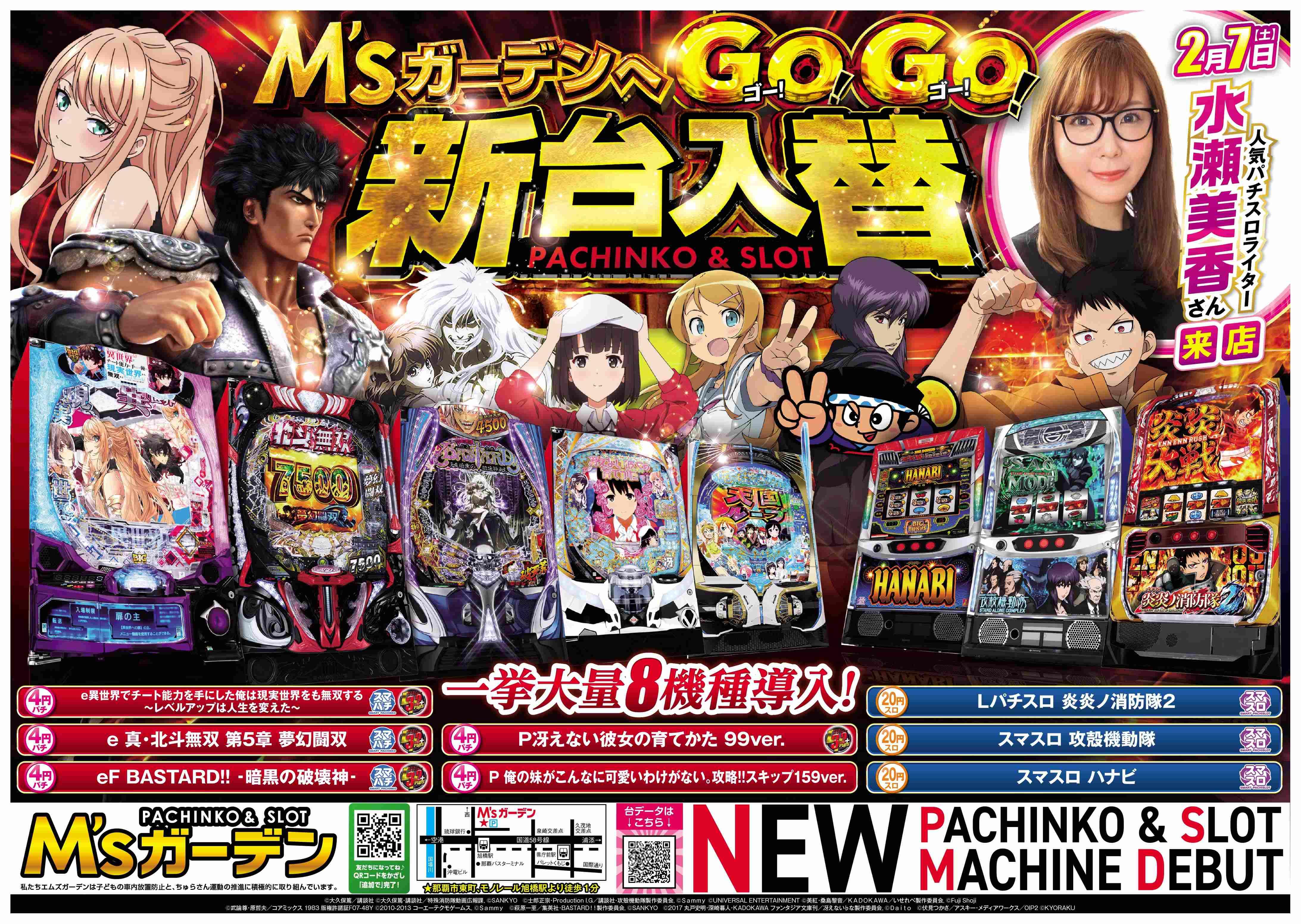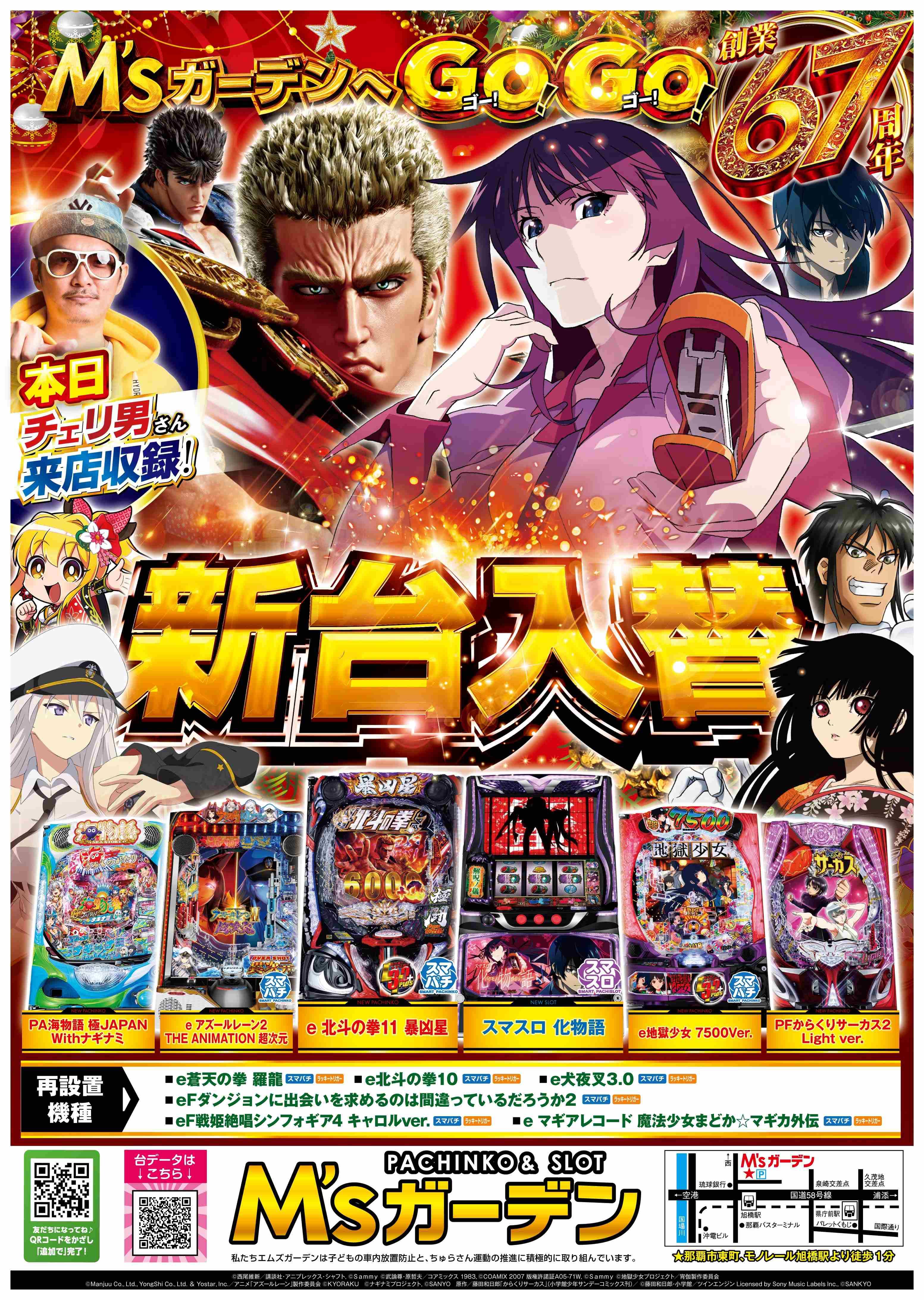 | 特徴 | 進化し続ける!エムズガーデンの最新設備! パチンコ表示機 REVOLA ◇最新表示機◇ パチンコ&スロットベガシアⅡ(各台計数機) 屋内喫煙室 / 屋外喫煙スペース/全台分煙ボード設置 パチンコエアーカーテン設置 ブルーエア設置(世界最高品質の空気清浄機) リフレッシュ・シャワー設置 ホール内空調システムで常に新鮮!きれいな空気♪ 『煙&ウィルス&臭い対策』快適な遊技環境を提供致します♪ 人体無害のアキュテクトで遊技機も常に除菌中! |