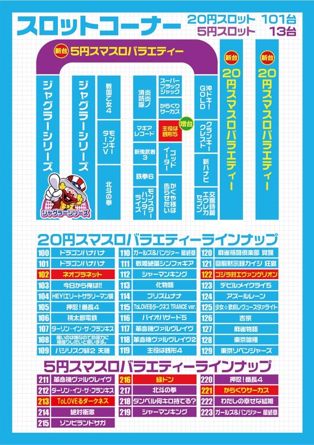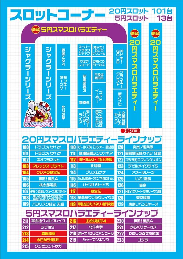 | 台数 | パチンコ117台 / パチスロ114台 |