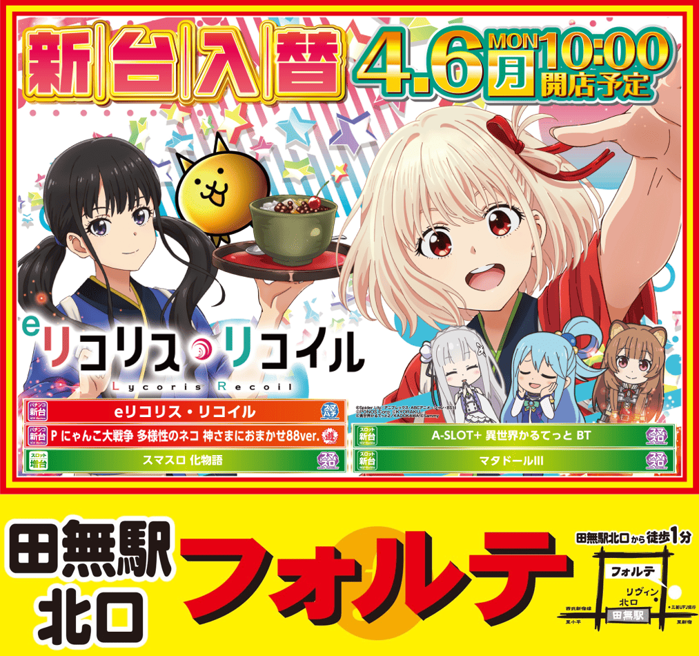 | 台数 | パチンコ240台 / パチスロ160台 |