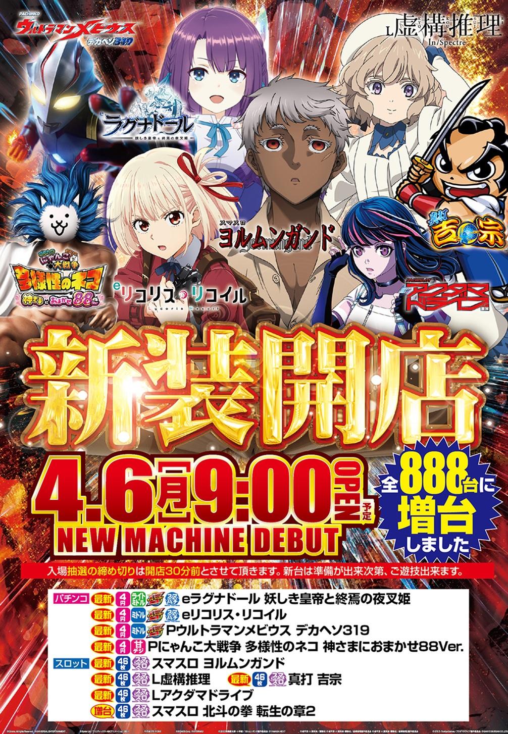 | 台数 | パチンコ475台 / パチスロ413台 |
