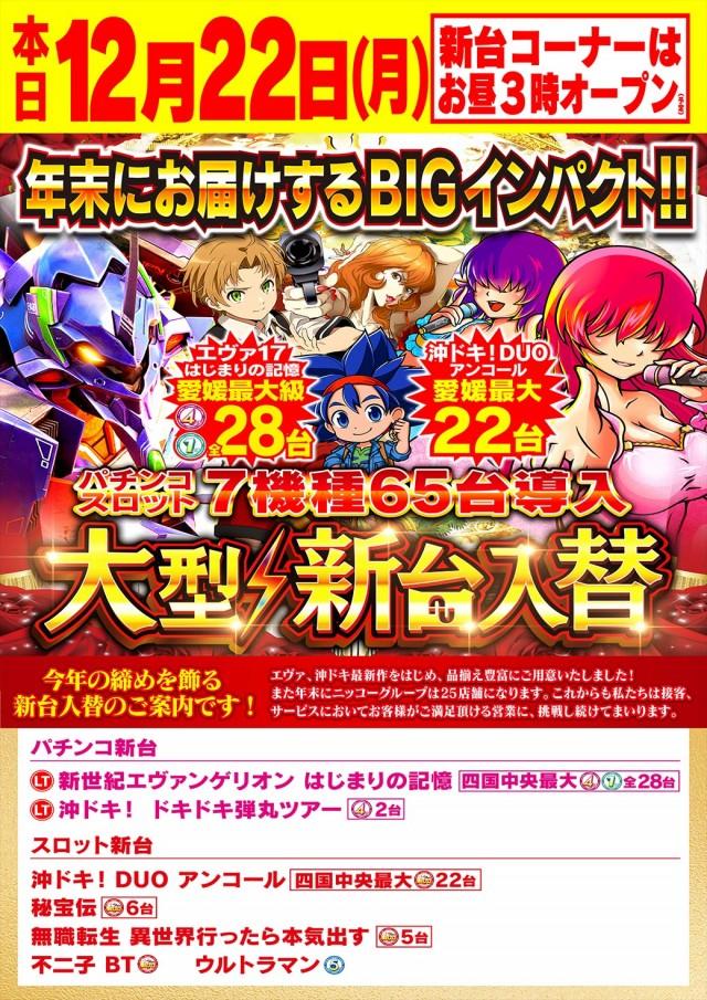 | 特徴 | ★四国中央最大1015台 だからできる 設置機種ラインナップ ★パチンコ・スロット 全台拡大計数設置 ★完全除菌・消臭ルーム ★休憩ルーム コミック3000冊、 全席USBポート完備 ★wi-fi完備 ★マッサージコーナー 女性専用あり ★飲食コーナー |