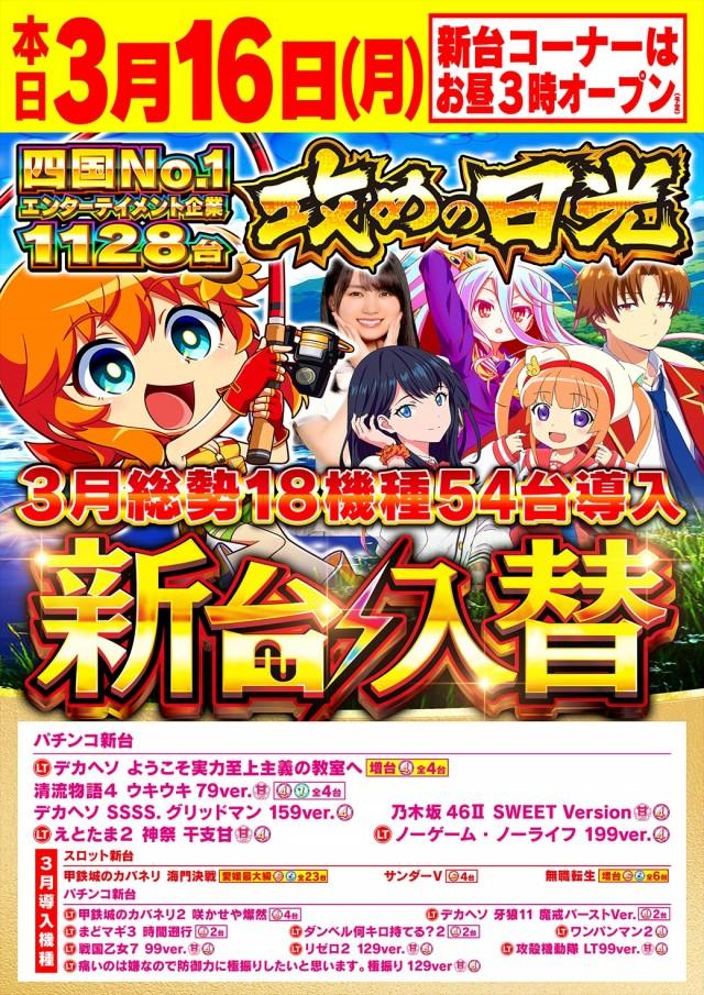 | 特徴 | ★四国中央最大1015台 だからできる 設置機種ラインナップ ★パチンコ・スロット 全台拡大計数設置 ★完全除菌・消臭ルーム ★休憩ルーム コミック3000冊、 全席USBポート完備 ★wi-fi完備 ★マッサージコーナー 女性専用あり ★飲食コーナー |