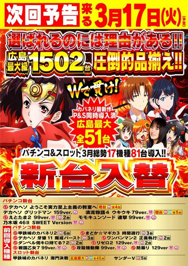 | 特徴 | ◆日本初防災特化型店舗 ◆広島最大1502台 だから出来る 設置機種ラインナップ ◆会員カードが超お得 【貯玉無制限】 ◆広々とした楽々台間スペース ◆パチンコ・スロット 全台拡大計数機設置 ◆完全除菌・消臭ルーム ◆完全コロナ対策 ◆休憩ルーム コミック3000冊以上、 全席USBポート完備 ◆Wi₋fi完備 ◆VIP喫煙ルーム ◆マッサージコーナー 女性専用あり ◆飲食コーナー |