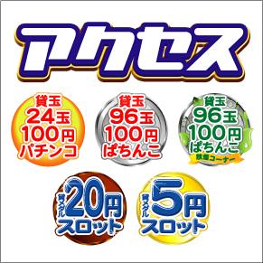 パチ[100円96玉/100円24玉] スロ[20円/5円] |