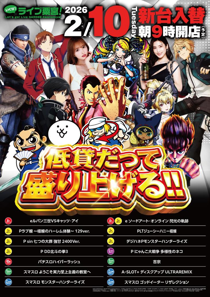 | 台数 | パチンコ281台 / パチスロ349台 |