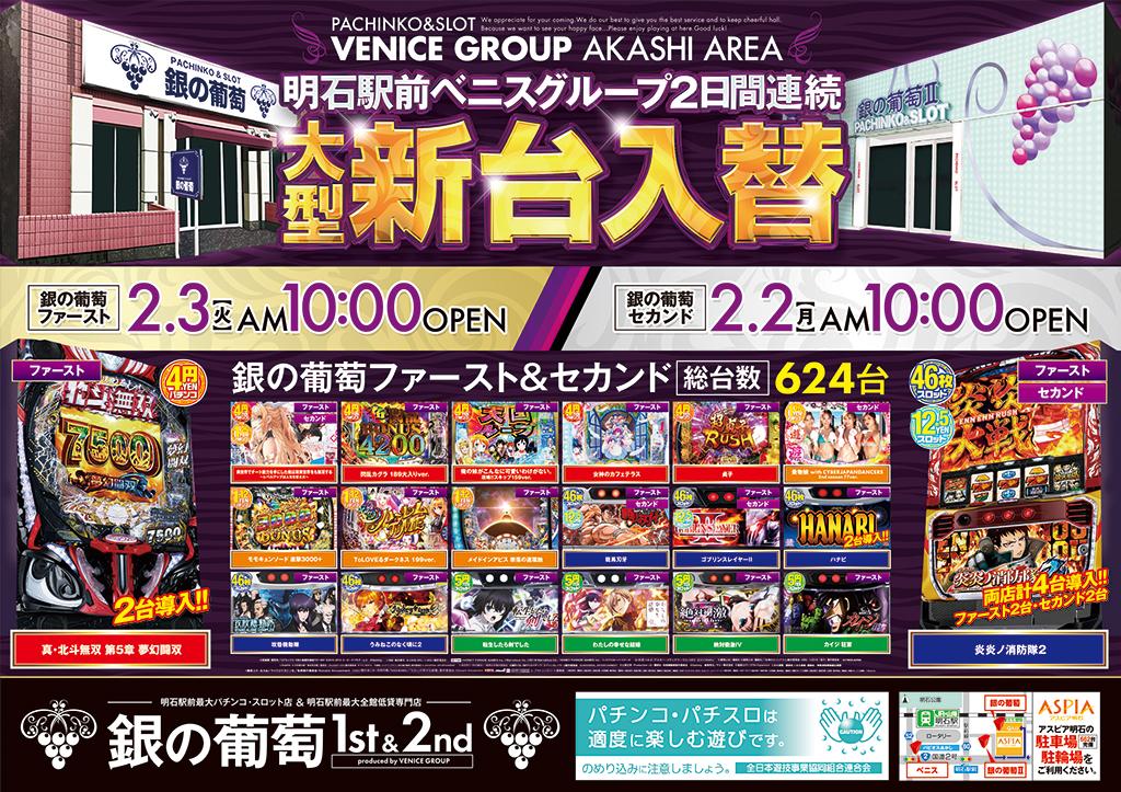 | 定休日 | 新台入替前日及びアスピア明石休館日はお休みを頂いております。 |