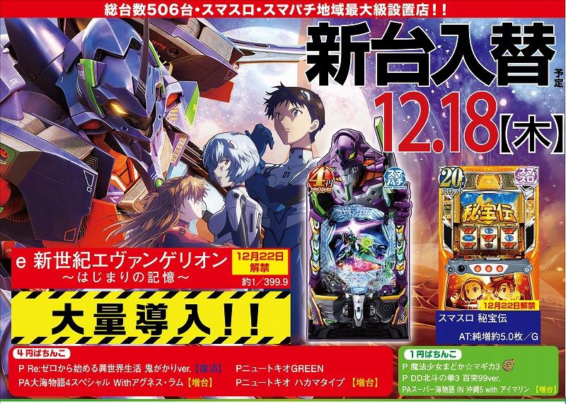 - 12月18日【木】新台入替初日!AM10時オープン『予定』♪