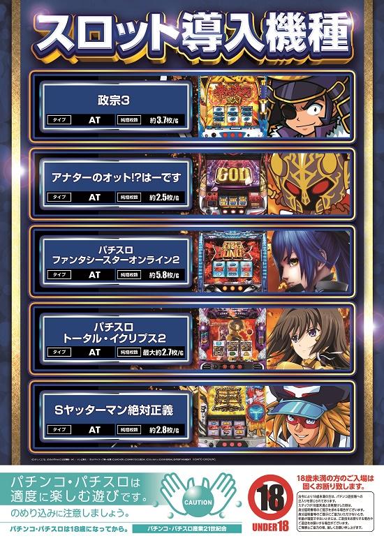 | 特徴 | 最新台から人気機種まで豊富なラインナップを設置しております。 |