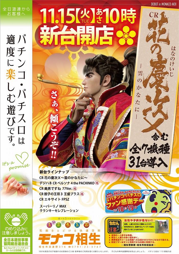 | 台数 | パチンコ400台 / パチスロ180台 |