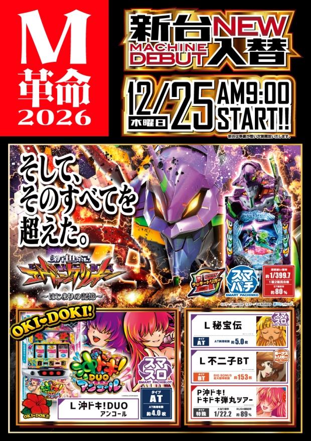 - 12/25(木)☆新台入替☆eエヴァンゲリオン☆L秘宝伝他!!