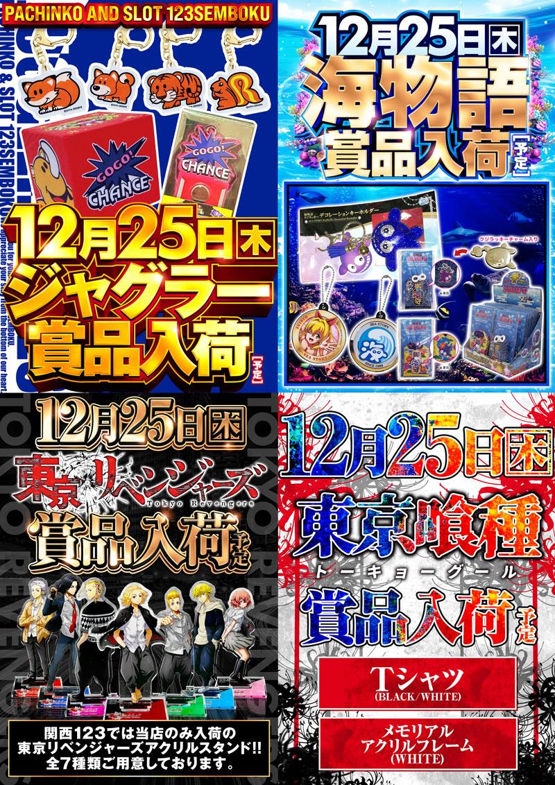 - 12月25日【木】海・喰種・東リベ・ジャグラー賞品入荷予定!
