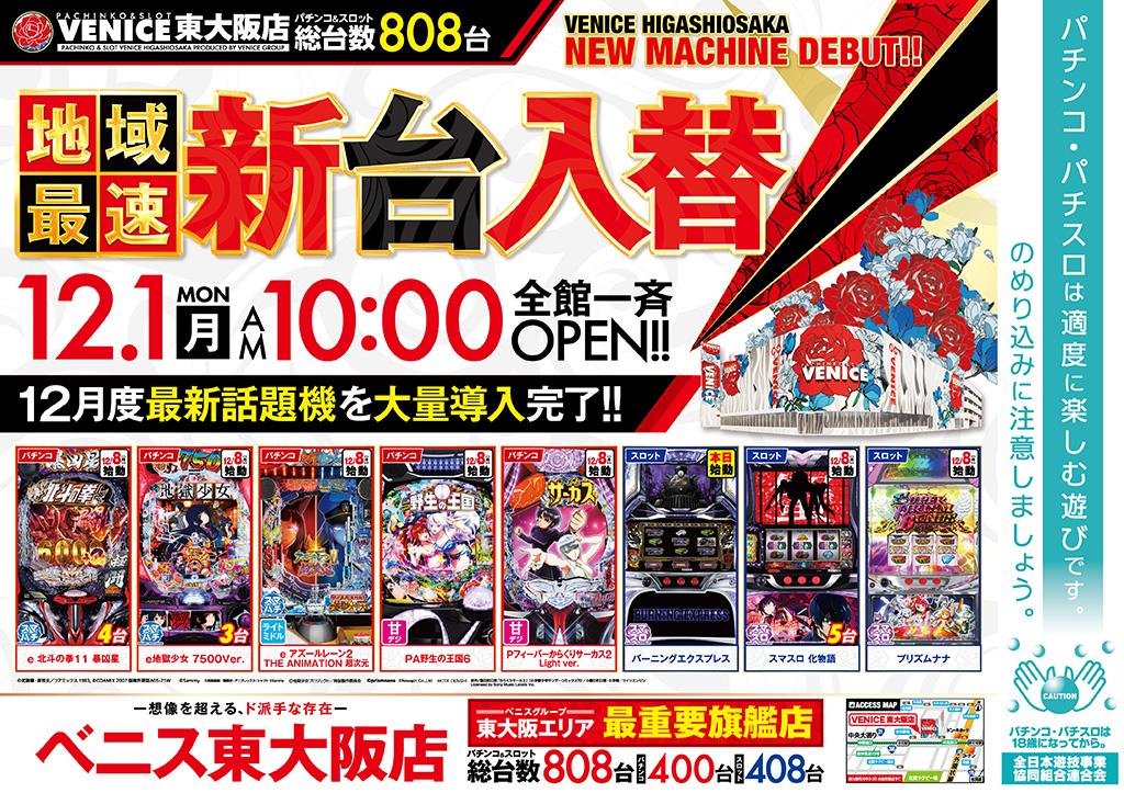 | 台数 | パチンコ400台 / パチスロ408台 |