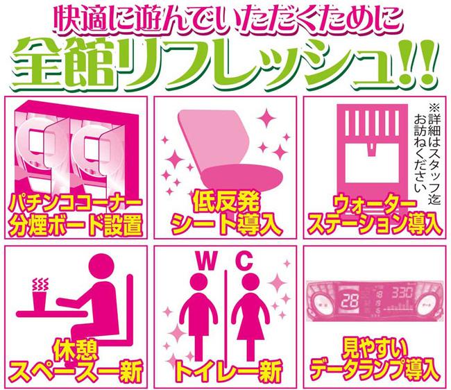 | 台数 | パチンコ167台 / パチスロ120台 |