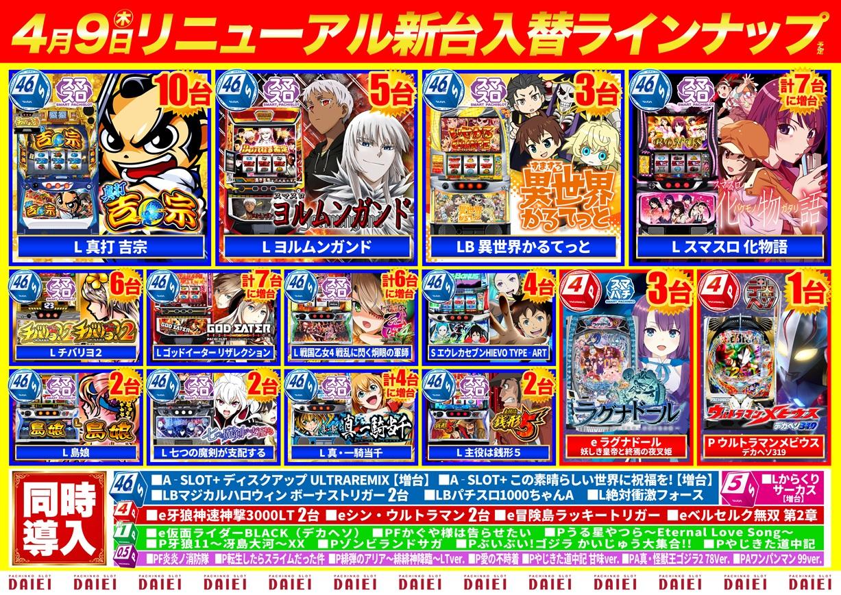 | 台数 | パチンコ405台 / パチスロ403台 |