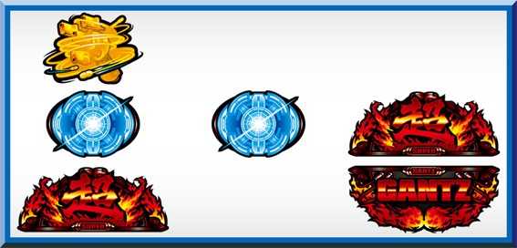 | 備考 | ★採点演出で十の位の数字が基本継続ゲーム数 ★初当り時は7G以上継続 ★毎ゲーム枚数上乗せ発生 ★レア役成立でゲーム数の減算ストップ ★消化中の転送図柄揃いで超EXTRA RUSHとなり、終了後はGANTZ RUSHに昇格 |