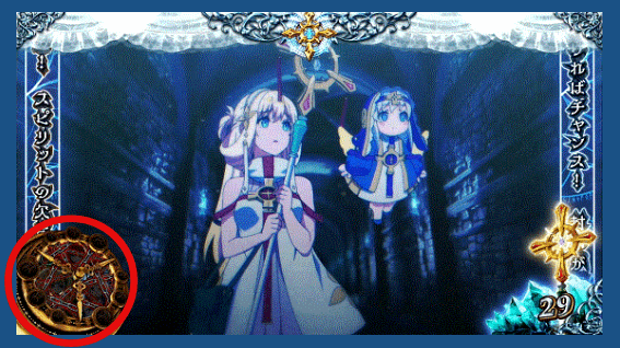液晶左下にスピリットの欠片が貯まるほどスピリット召喚期待度がアップ。同キャラの欠片が3つ貯まるとCZ以上が濃厚となる。