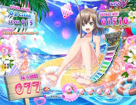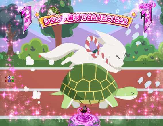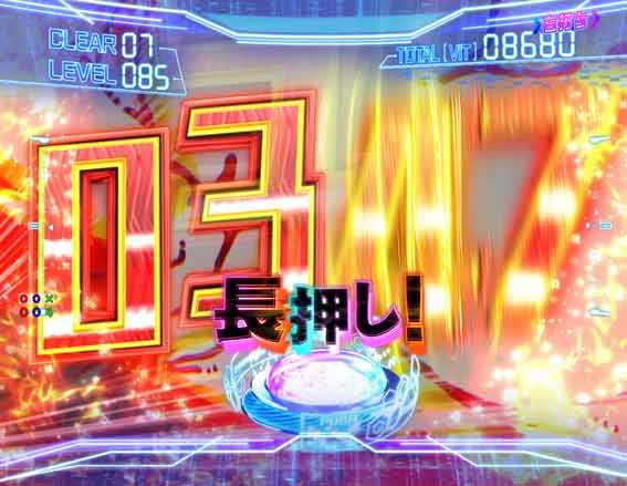 ボタン長押しで出玉数をアップさせる演出が展開。最後はボタンPUSHでトータル出玉が表示される。