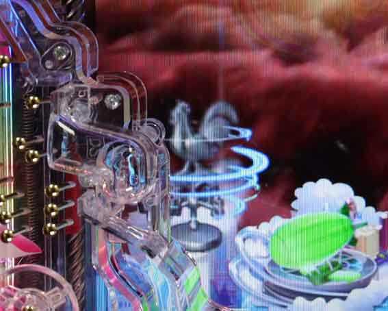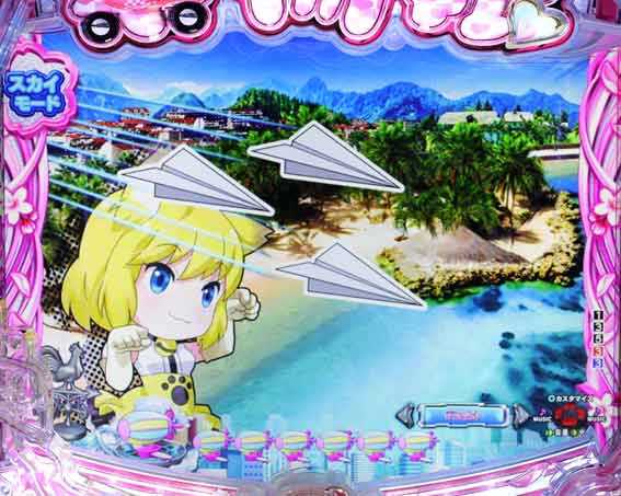 | アニメの女の子キャラたちが活躍する演出が展開。 RUSH中は変動画面が1ラインになり 予告&リーチ演出が大きく変化する。 |