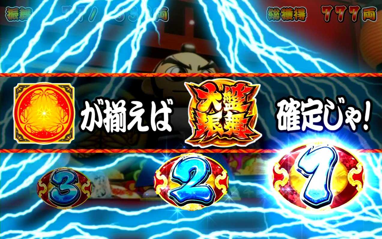 前兆中は同系統演出が頻繁に発生し、特に姫や奥方が頻出するようになるので見逃さないようにしよう。また自力ルートの際は液晶左右の剣舞・家紋メーターにも注目。ひとつでも光れば前兆期待が高まり、全て点灯すれば高確率突入の期待大!!