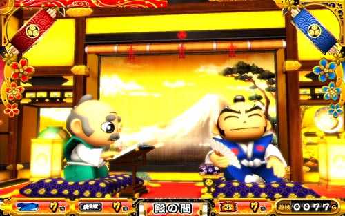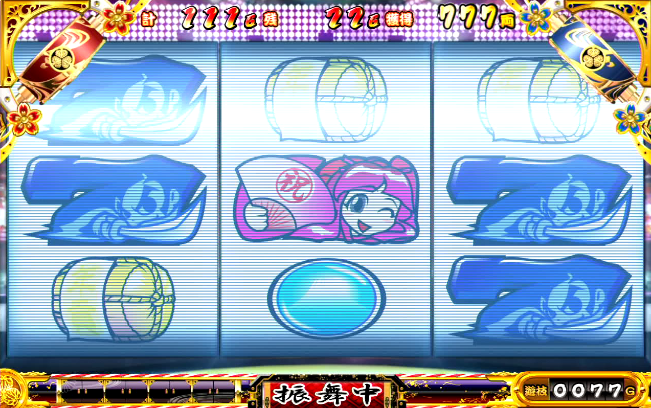通常時は主に「城下町」「城内」「茶屋」ステージを行き来している。「殿の間」「天守閣」ステージに移行すればAT当選のチャンス!