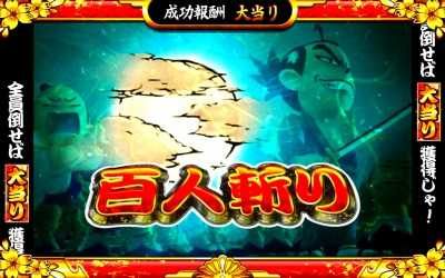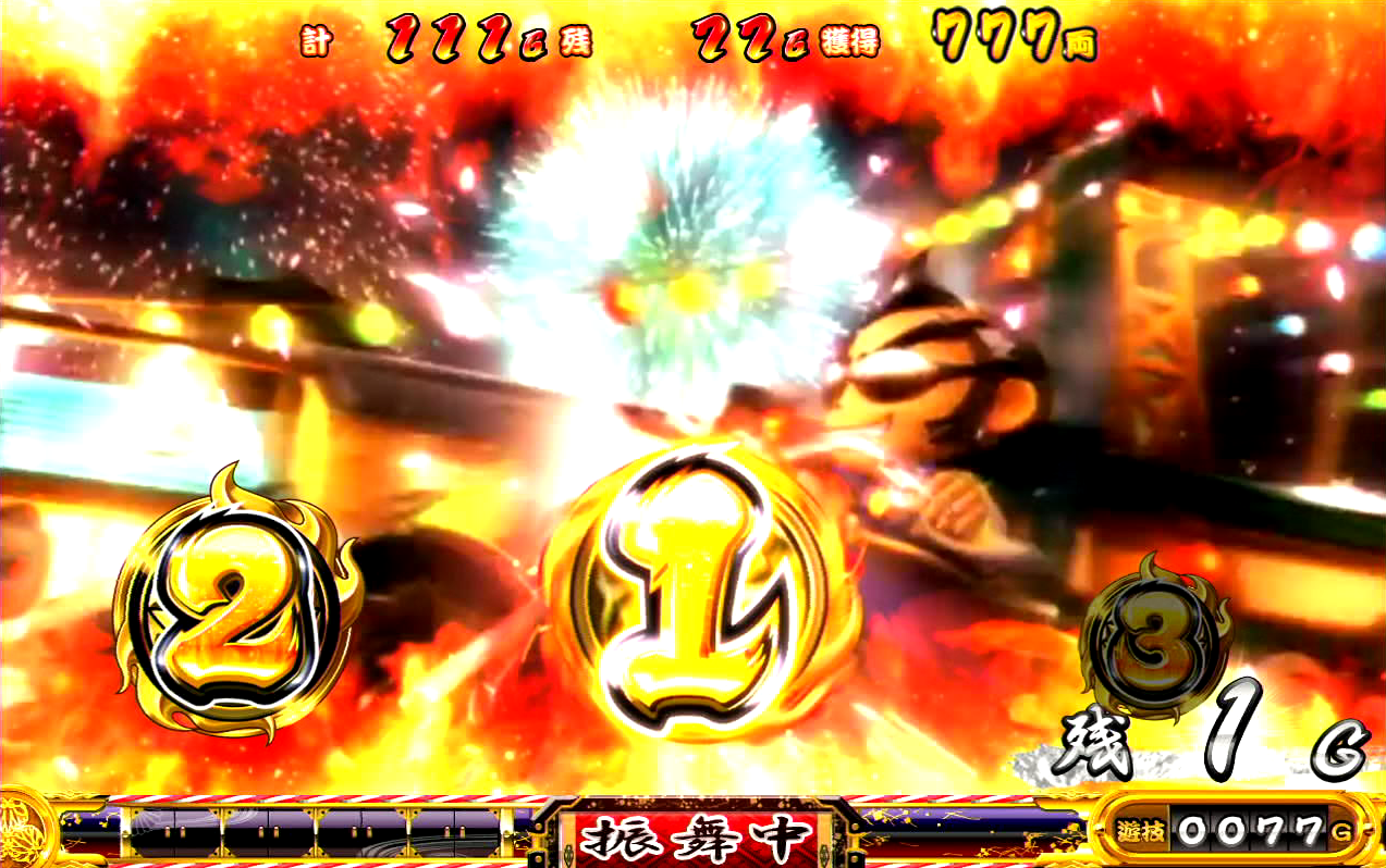 1ゲーム目雑魚殲滅や剣豪対決時の背景炎で期待度UP!!