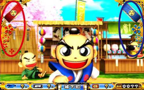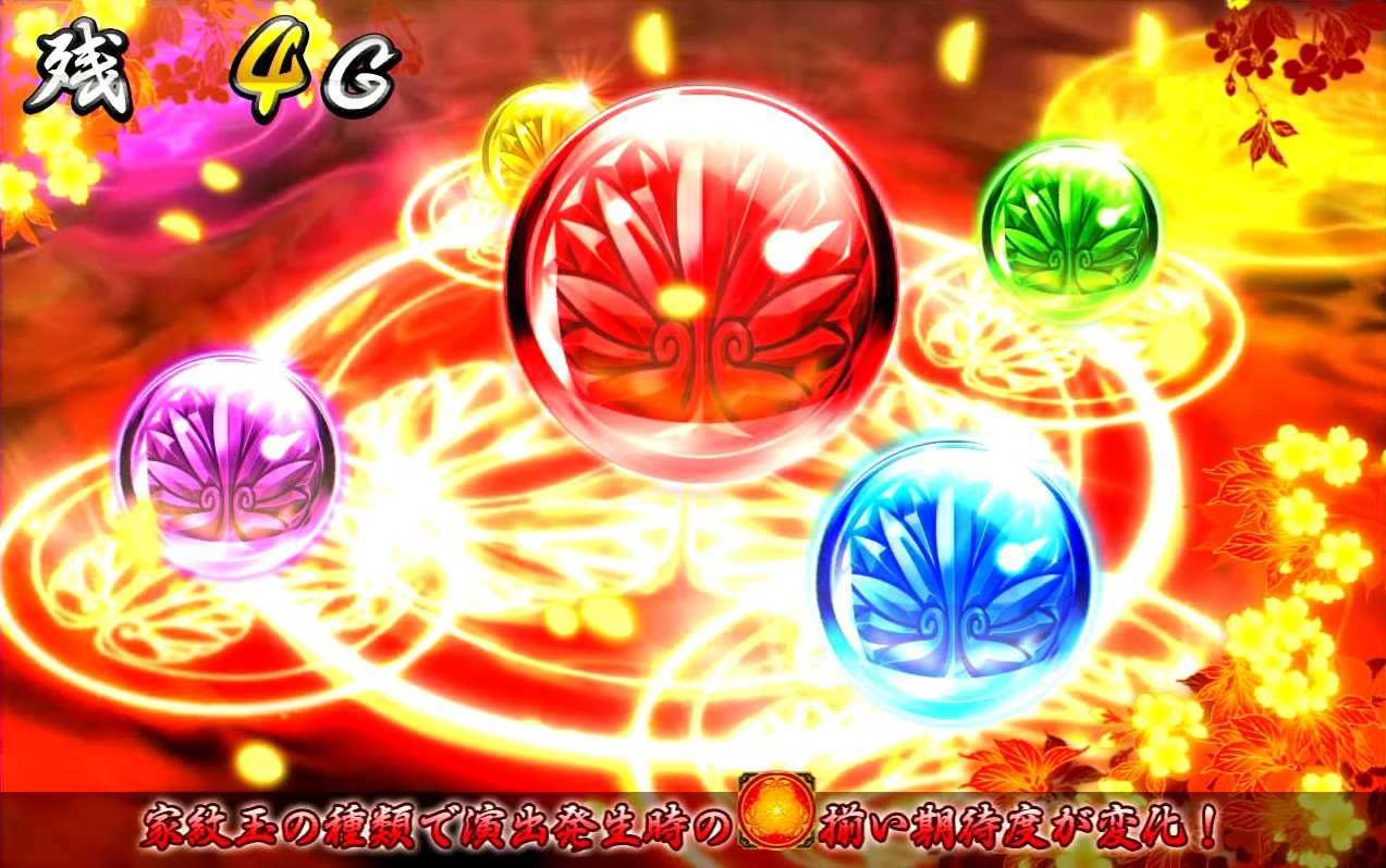 家紋が揃えばボーナスorAT確定!!玉の色が家紋揃いの期待度を示唆。赤だと大チャンス!!