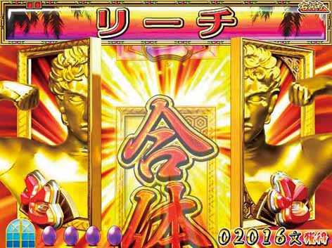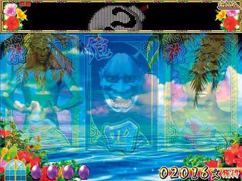 「三」「七」図柄でリーチになると発展。合体に成功すればメガボーナスとなる。ドット文字が赤ならチャンス、画面上部に楽亀・幸亀の絵が出現すれば激アツ!