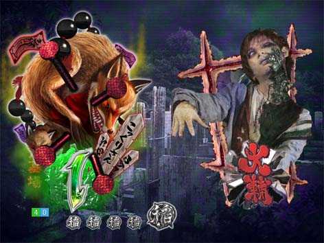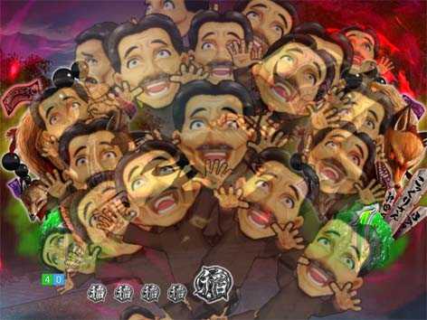 「人形お菊」役モノの首が乱れ飛ぶスーパー発展演出。ボタンを押してパネルを突き破るほど高期待度のスーパーへ発展!