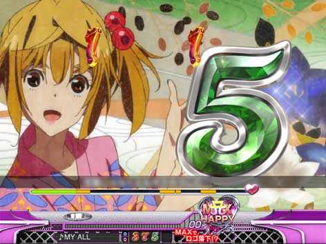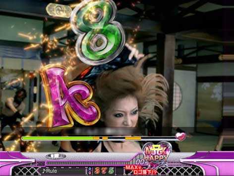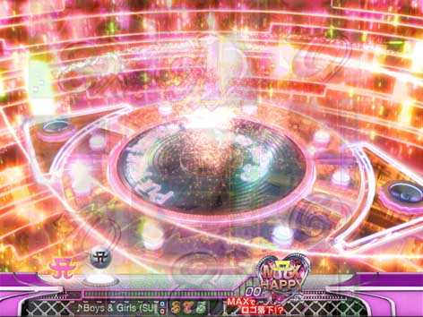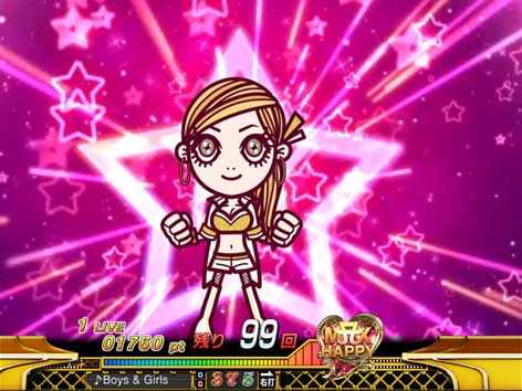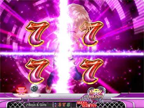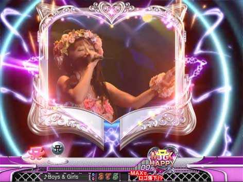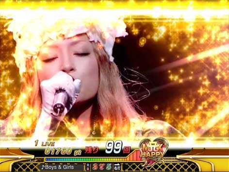 7図柄揃いor大当り直後にMAX HAPPY演出が発生した場合は16Rの「SPECIAL HAPPY BONUS」。ラウンド中はMUSIC SELECTが可能で、様々な楽曲を「フルVersion」や「サビVersion」で聴くことができる。