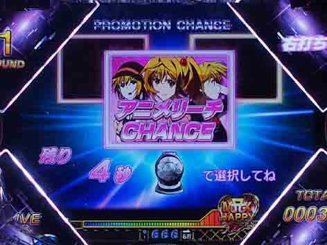 大当り直後にMAX HAPPY演出が発生しなかった場合は「HAPPY BONUS」。ラウンド中に発生する「PROMOTION CHANCE」に成功すれば16Rに昇格!?