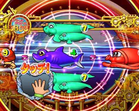 魚群レーダー予告から発展するリーチで、スペシャル魚群が登場すれば大当りとなる。通常のボタン押しではなく、タッチ演出ならチャンスアップ。