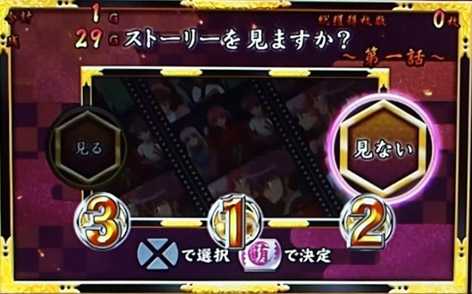 通常時に選択していたメインキャラのストーリーの「見る」「見ない」を選択できる。