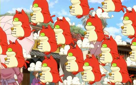 適当常時の背景色によって継続バトルのモードを示唆。モードが良いほど獲得できる家紋の数が優遇される。青<緑<赤 の順で期待度が高く、青以外ならチャンスとなっている。