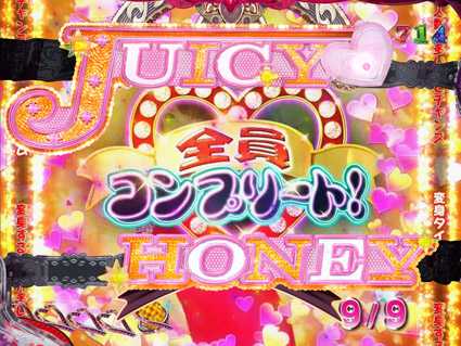 ジューシーハニーチャレンジ成功時、プラス1Rとなる5Rで『SUPER HONEY BONUS』と表示され、16R大当りに昇格することがある。