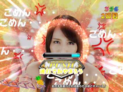セクシー女優に追いかけられるアクションがメインで、追っかけられたい草食系の人にオススメ。継続率は約70%。V獲得でRUSH突入確定後、ラウンド中に選択可能。