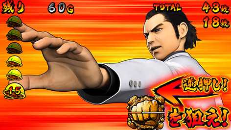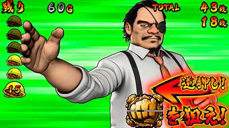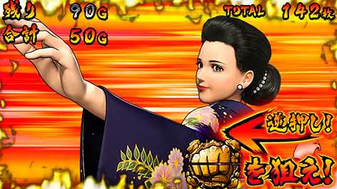 カットインからの"拳"揃いで突入。突入後は、ボタンPUSHでG数上乗せorBONUS!"出世"回胴の名前のとおり、上乗せゲーム数がどんどん出世(大きく)なっておくのが特徴だ。なおKC中のBBでも発生する可能性があり、見事BONUSに当選した場合はBONUS終了後に即連するぞ!