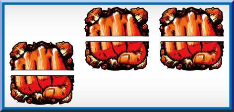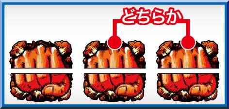 枠内に上拳図柄と下拳図柄が両方見えるように停止した場合に、各種チャンス目となります。