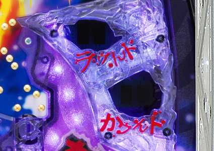 盤面下部の役モノ内のVルーレットにあるVゾーンに玉が入賞すると大当り。右打ちで右肩にあるゲートに玉を通過させると、その下にあるアタッカーが開放。12ラウンドで約1440個の払い出し。本機は2回ワンセットで大当りを獲得できるゲーム性となっているので、初回大当りで約2880個の払い出しが期待できる。
