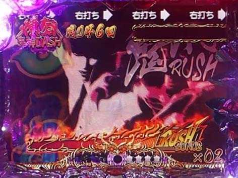 本機のSTモードで継続率は70.4%。「覇狐RIDE」「鬼神DASH」「絶鬼ZONE」と、回転数により演出が異なる3段階構成のSTとなっている。