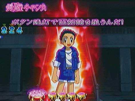 液晶左下から飛び出す水晶ギミックの色に注目。赤なら期待できるぞ!