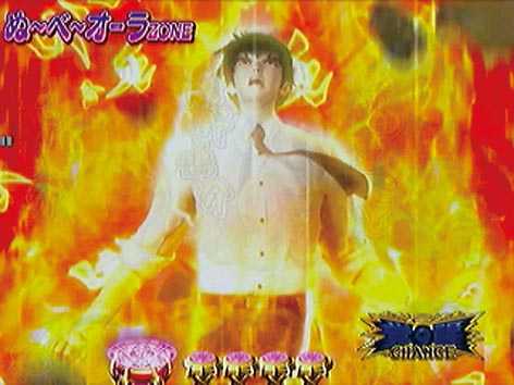 オーラZONE図柄3つ揃いで突入する先読みゾーン。ぬ~べ~のオーラが赤くなればアツい!