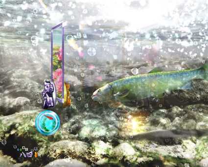 イワナが跳ねるとチャンス。赤い波紋発生でチャンスアップ!