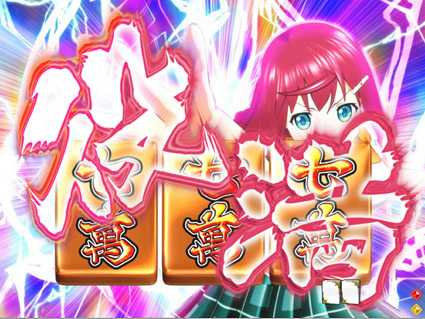 通常時に三・七図柄揃いで発生する4R大当り。大当り終了後は必ず闘牌RUSHへ突入する。