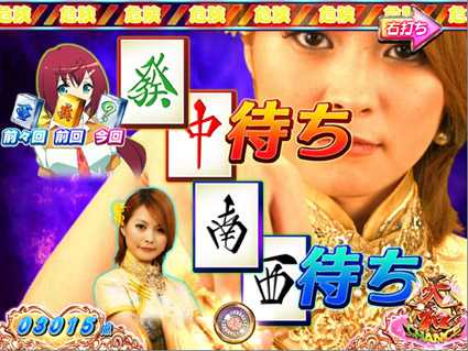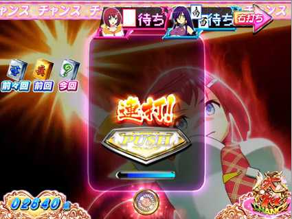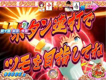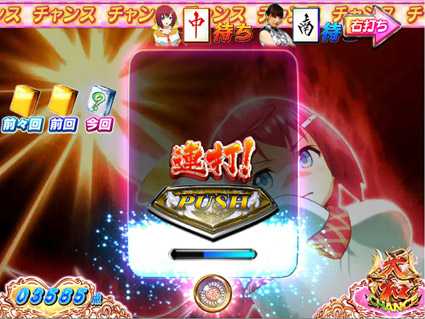 画面左下から点棒が飛び出せばチャンス。発光色にも注目!