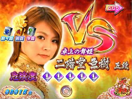 演出に成功すると闘牌RUSH獲得でV・Vループに突入。ライバル激闘編・雀牌モード・プロクイーン編のいずれかから、RUSH中の演出を選択できる。