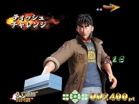 プレイヤーがカイジと賽投げで勝負! ゾロ目を出すことができれば大当り!!